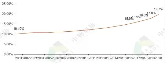 根据国家统计局2020年开展的第七次全国人口普查数据显示,我国60周岁及以上老龄人口数达到2.64亿,占总人口比重的18.70%,其中65周岁及以上老龄人口1.61亿,占总人口比重的13.50%,即将步入深度老龄化社会。根据全国老龄委办公室预测,2021年,伴随着第二次生育高峰人群进入老年,我国开始进入加速老龄化阶段。同时,总人口逐渐实现零增长并开始负增长,人口老龄化将进一步加速。到2050年,老年人口总量将超过4亿,或接近5亿,老龄化水平逼近35%。中国将进入一个高度老龄化的平台期,成为世界上老龄化最严重的国家。这意味着届时全世界每5个老人之中就有1个来自中国。