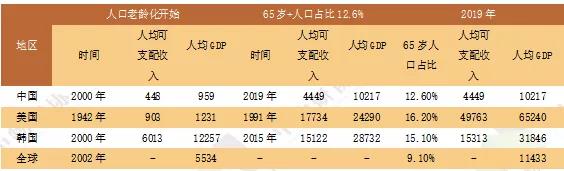我国2019年65岁以上人口占比12.6%,老龄化程度与美国1991年、韩国2015年的水平相当。彼时,其人均GDP均约2.5万美元、人均可支配收入均超1.5万美元;而2019年我国人均GDP仅10217美元、人均可支配收入仅4449美元,存在较大的“未富先老”问题,老年人群的养老金来源亟需扩充。