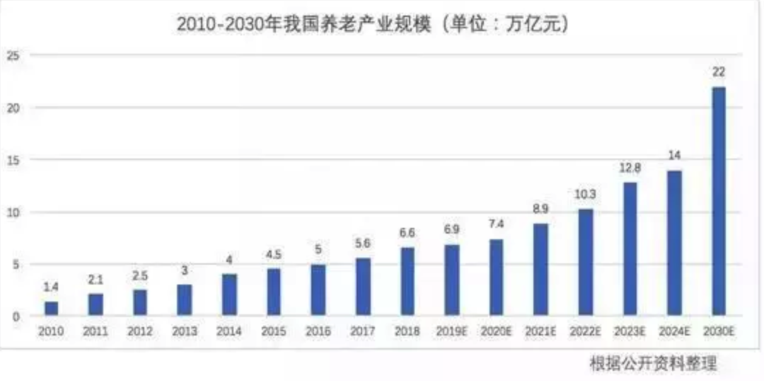 所以有些机构预测到2030年,也就是十年之后,中国养老产业的规模有可能超过20万亿元 。大家知道今天中国房地产的规模是在12万亿左右,养老将替代地产毋庸置疑的成为中国的第一大产业。